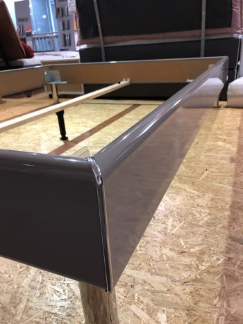 Das Doppelbett Mavi Plus der Firma Select-Art ist in einem schönen taupefarbenen Hochglanz gehalten.
