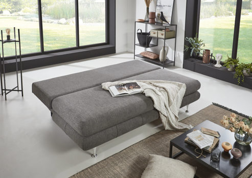 Das Funktionssofa Benfeld der Firma Sun Garden ist in einem schönen grau gehalten und lässt sich im Handumdrehen in ein Schlafsofa verwandeln.