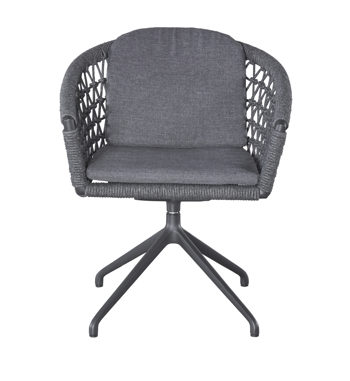 Der Drehstuhl Bari der Firma Wholesaler ist in tollen Rope Material gearbeitet in der Farbe dunkelgrau. Das Gestell ein Aluminiumgestell in der Farbe anthrazit. Die Auflage ist ein Olefin dunklegrau gehalten. Dieser Stuhl ist einfach ein echter Hingucker.