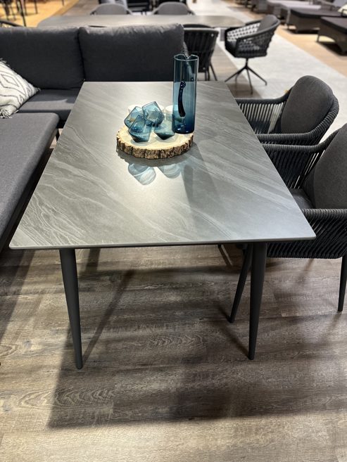 Die Ecklounge Bari der Firma Wholesaler ist in tollen Rope Material gearbeitet in der Farbe dunkelgrau. Das Gestell ein Aluminiumgestell in der Farbe anthrazit. Die Auflage ist ein Olefin dunklegrau gehalten. Diese Sitzgruppe ist einfach ein echter Hingucker.