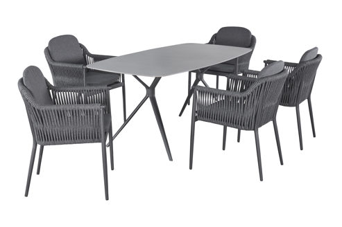 Der Armlehnstuhl Bari II der Firma Wholesaler ist in tollen Rope Material gearbeitet in der Farbe dunkelgrau. Das Gestell ein Aluminiumgestell in der Farbe anthrazit. Die Auflage ist ein Olefin dunklegrau gehalten. Dieser Stuhl ist einfach ein echter Hingucker.