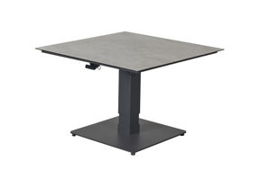Der Bistrotisch Bondino der Firma Wholesaler ist mit einer Glasplatte mit Keramikbeschichtung in Betonoptik gehalten. Er hat eine tolle kleine Größe mit B/T 70x70cm. Zudem ist er höhenverstellbar von 48cm-66cm und kann so sowohl als Beistelltisch, als auch als kleiner Esstisch genutzt werden.