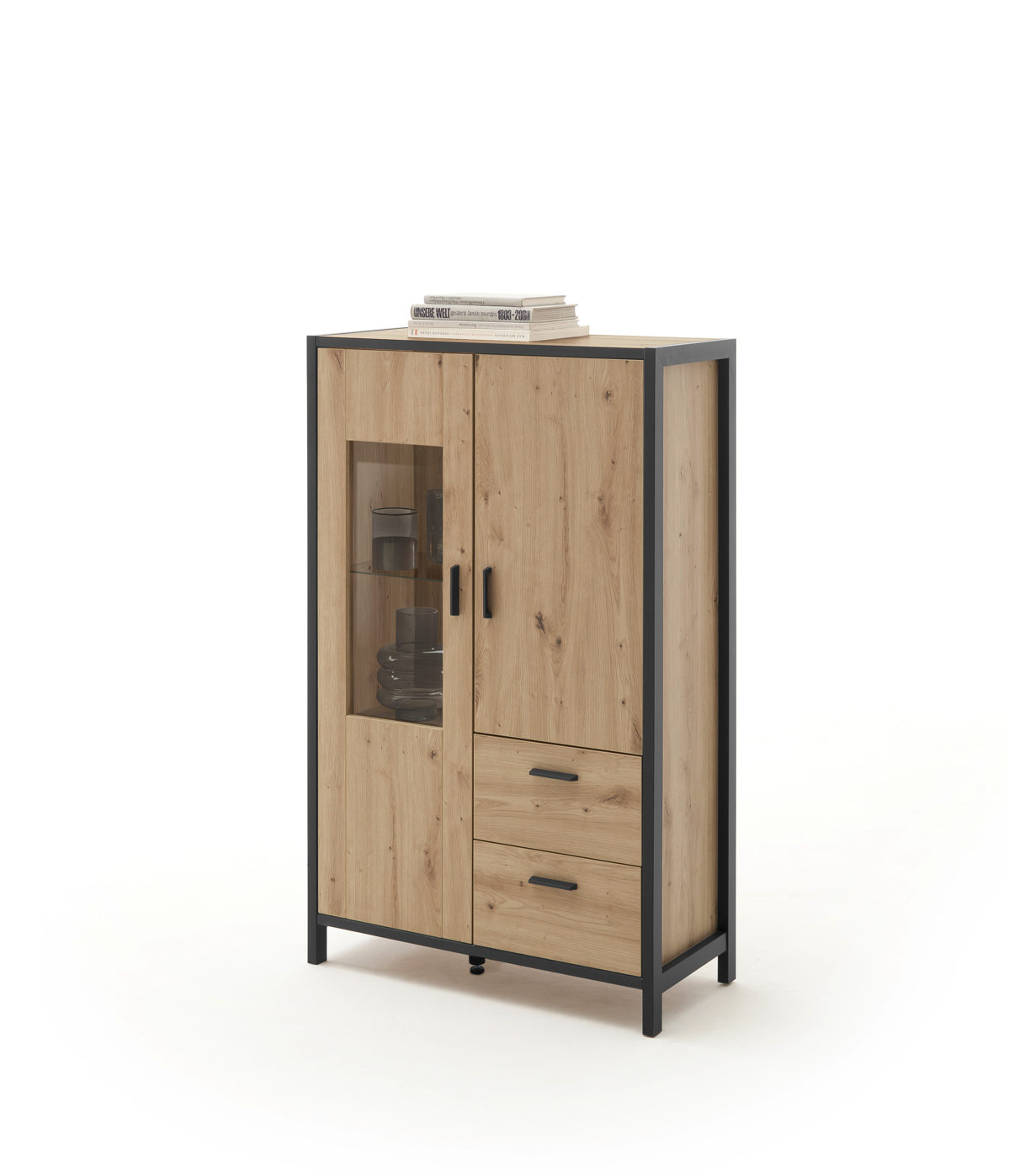 Das Highboard Algarve der Firma MCA furniture ist in Balkeneiche Nachbildung gehalten, der Rahmen ist ein Dekor in anthrazit, welches den Industrial Look unterstreicht.