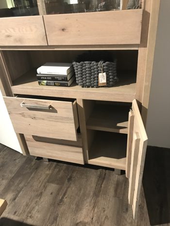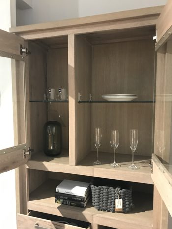 Vintage summer grey Eiche massiv, B-H-T: 100x200x45cm mit 1 Tür und 2 Glastüren