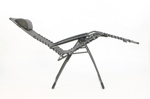 Durch einfaches Drücken der Rückenlehne lässt sich der Relaxsessel in die Herz-Waage-Position bringen.