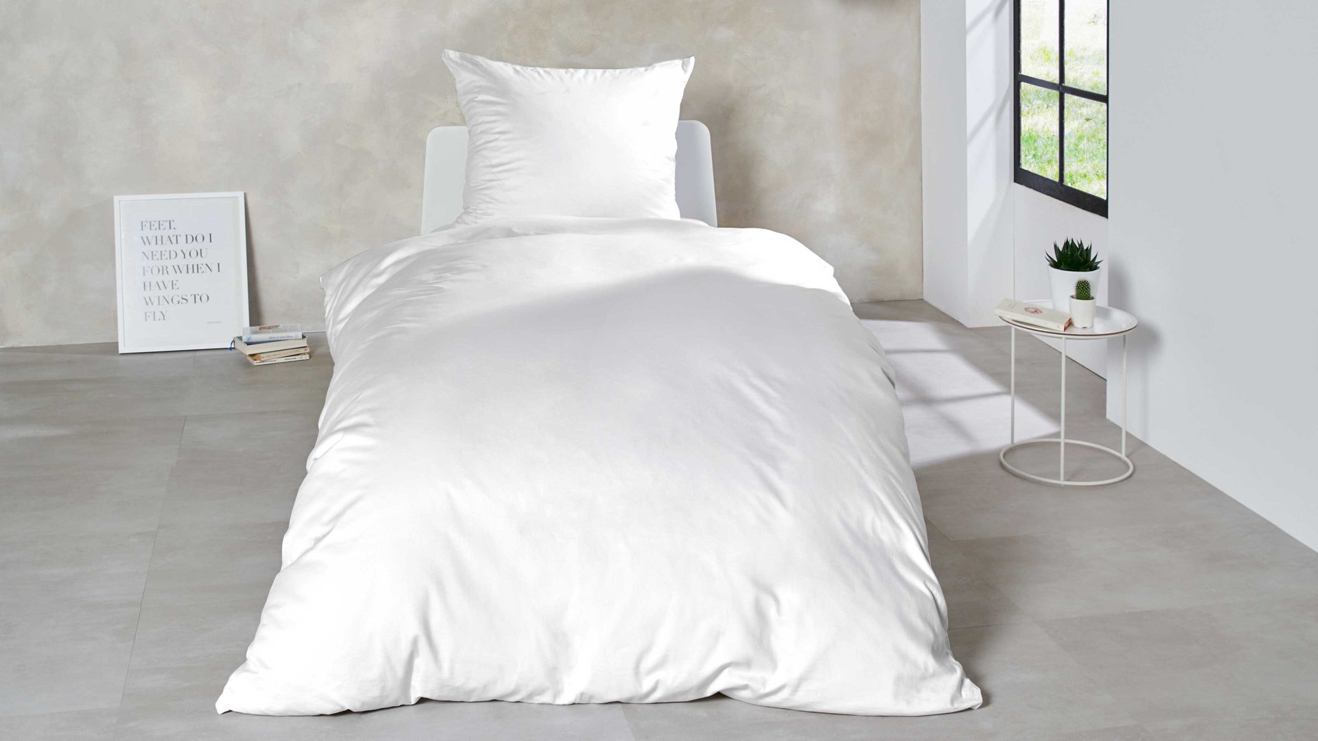 Praktische Reißverschlüsse machen das Beziehen zum Kinderspiel. Der glänzende Satin-Look mit Wohlfühl-Charakter zeigt sich auf der Bettbezugbreite von ca. 135 cm und der Länge von ca. 200 cm und einer Kopfkissenbezuggröße von ca. 80 x 80 cm (BxL) von seiner angenehmen Seite. Mit minimalistischer Eleganz bringt die Bettwäsche in Weiß besonderes Flair ins Schlafzimmer.