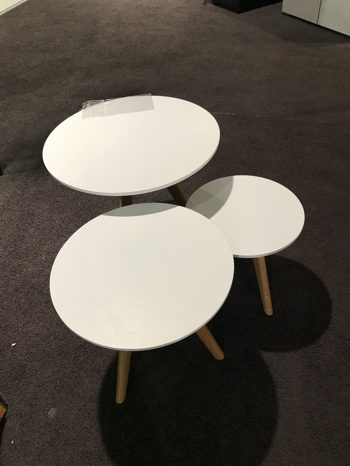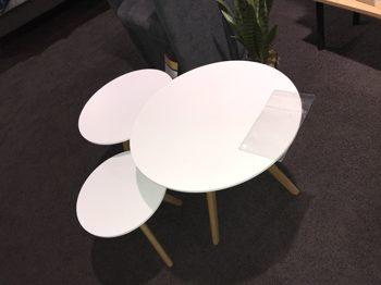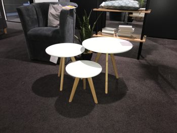 Das Beistelltisch-Set Retro der Firma Ludwig Guttmann besteht aus drei kleinen Beistelltischen mit den Durchmessern 32, 40 und 50cm. Für die Beistelltische findet sich immer ein Platz, ob zusammen oder getrennt, für Blumenvase oder Deko.