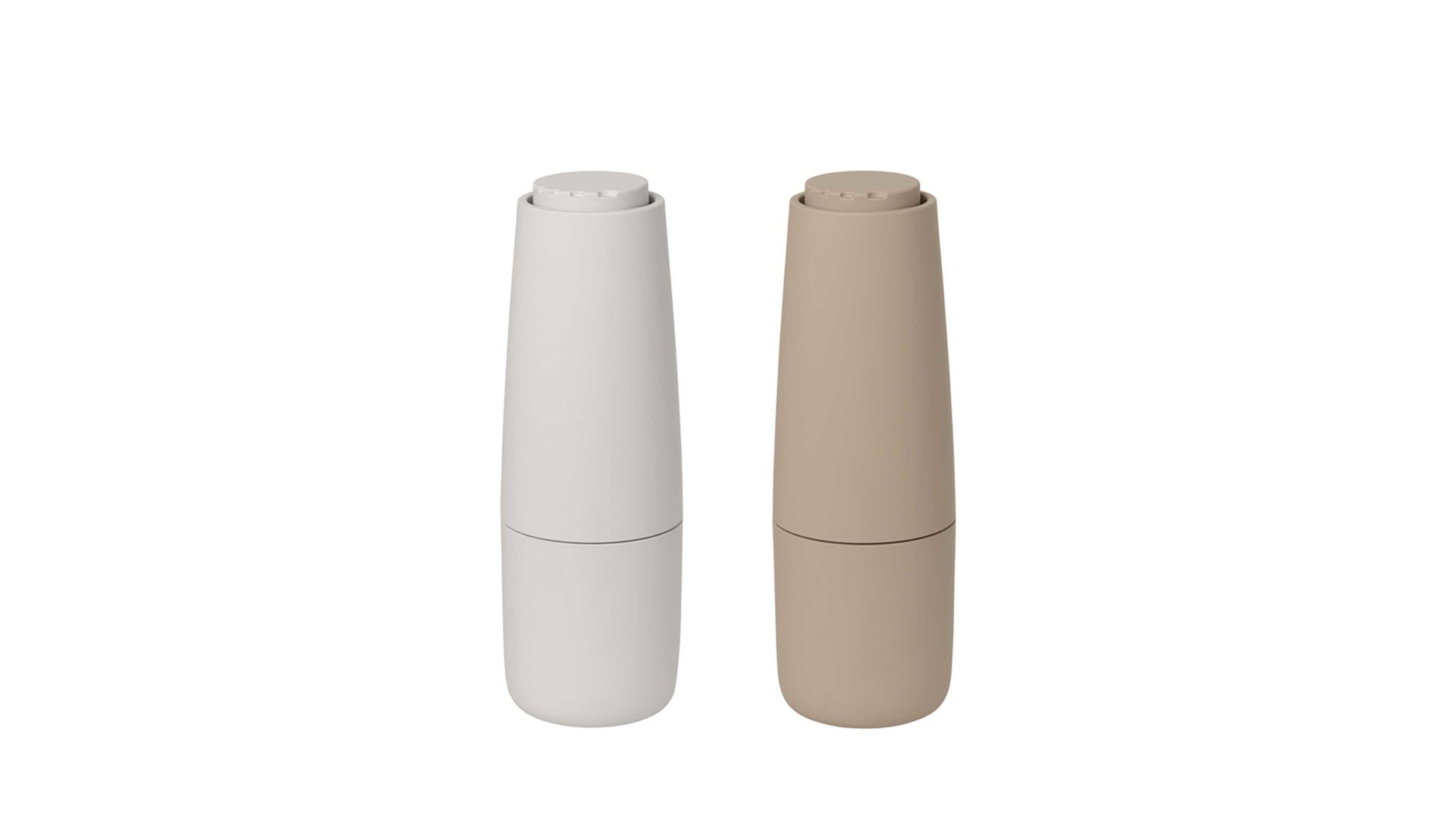 blomus Salz- & Pfeffermühlen-Set Salpi | zweiteilig | sandbeiger und cremeweißer Kunststoff | Einstellrädchen | Öffnen und Befüllen mittel Steckmechanismus | Keramik-Mahlwerk | Mahlgrad von sehr fein bis grob einstellbar | in verschiedenen Ausführungen bestellbar