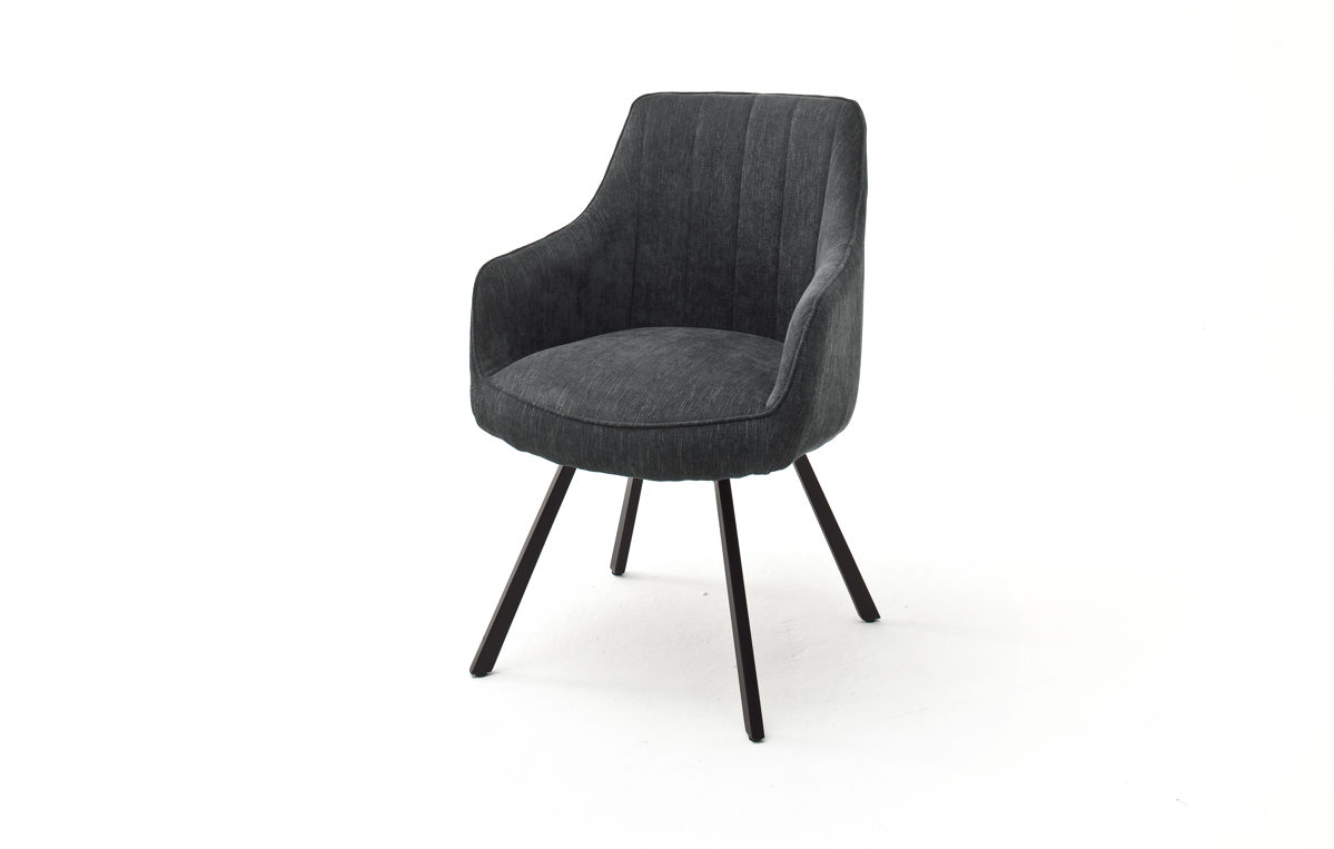 Der Polsterstuhl Sassello der Firma MCA Funiture ist mit einem pflegeleichten Chenille in anthrazit bezogen. Das Gestell ist schwarz matt lackiert.