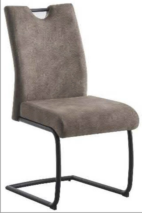 Der Schwingstuhl Acroma der Firma MCA Funiture ist mit einem pflegeleichten Antiklook-Sotff in sand bezogen. Das Gestell ist schwarz matt lackiert.