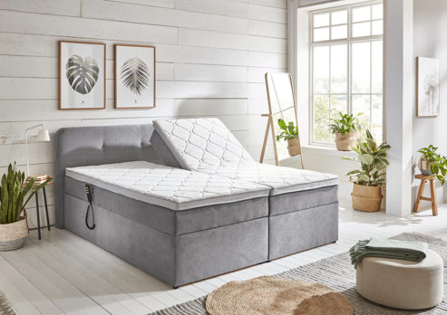 Das Boxbett Gabriola der Firma Sun Garden hat eine 7-Zonen-Taschenfederkernmatratze und ist motorisch verstellbar. Unter dem Kopf- und dem Fußteil befindet sich ein Bettkasten und bietet viel Stauraum.