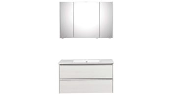| Maße Einzelartikel: | Spiegelschrank ca. 103 x 70 x 17 cm (B/LxHx) Waschbecken ca. 101 x 2 x 47 cm (B/LxHxT) Waschbeckenunterschrank ca. 98 x 54 x 46 cm (BxHxT) | |