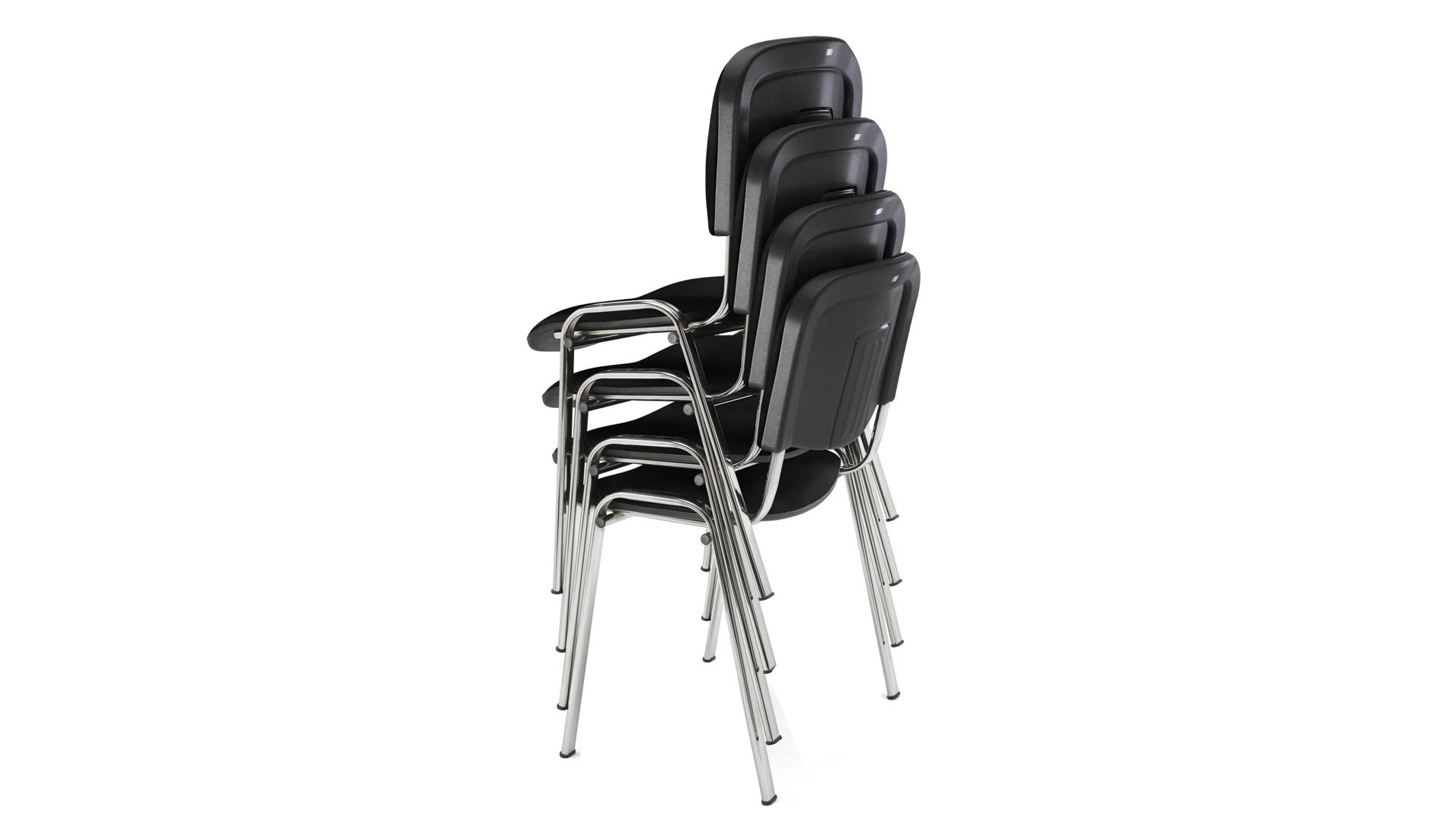 Dieser wertige Besucher-Stapelstuhl erfüllt hohe Ansprüche an Design, Komfort und Funktionalität. Verchromte Metallfüße sorgen für die nötige Robustheit und damit auch einen stabilen Stand des Stuhls. Zudem unterstreichen sie die moderne Erscheinung. Perfekt darauf abgestimmt ist der schwarze Stoffbezug. Die sehr klassische, puristische Farbgebung und die schlichte Formensprache machen den Vierfußstuhl zu einem edlen Allrounder, der sich in verschiedene Einrichtungskonzepte harmonisch einfügt. Er kann beispielsweise als Gästestuhl im privaten Bereich oder auch als Konferenzstuhl im beruflichen Kontext verwendet werden.
