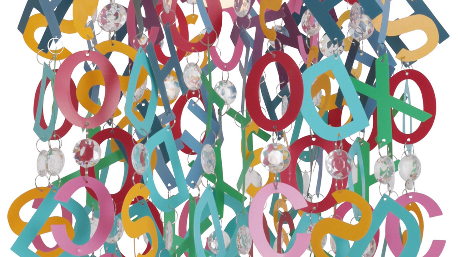 Der näve Kinderzimmer-Lampenschirm, der zahlreiche bunte Buchstaben in einem wild-verspielten Mix präsentiert, ist für eine Pendelleuchte ...
