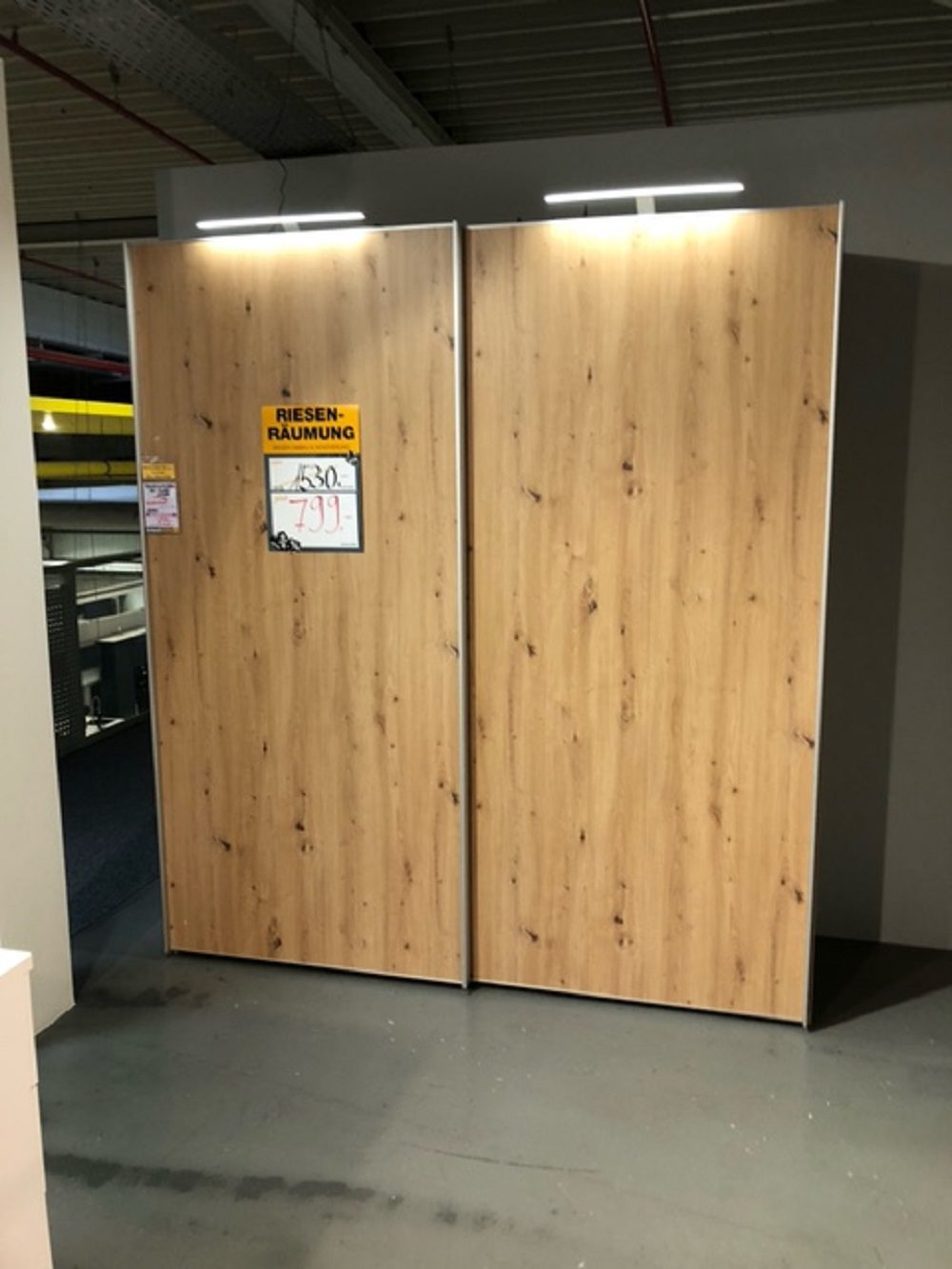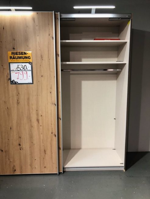 Der Schwebetürenschrank Sinfonie Plus ist in moderner Artisan Eiche Nachbldung gehalten. Er bietet ihnen viel Platz, um ihr Kleidung zu verstauen.