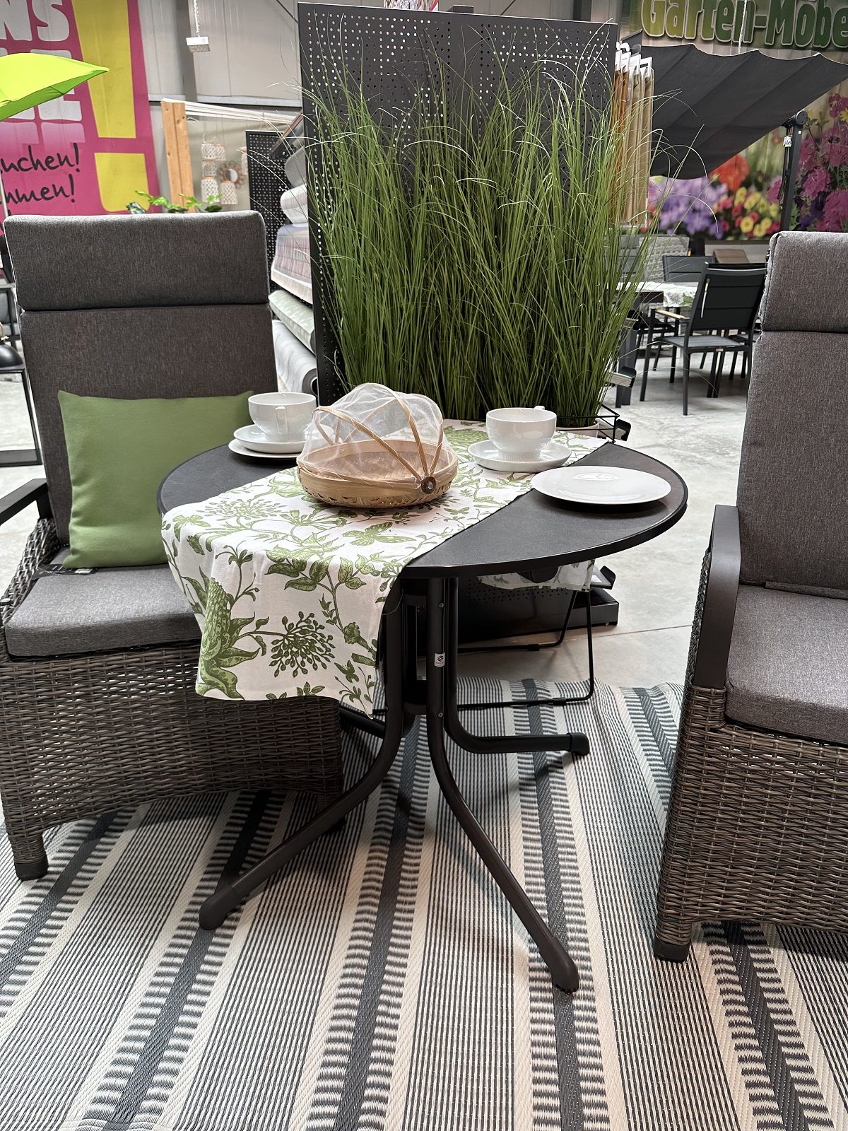 Der Klapptisch Vivodur der Sieger ist mit einer Tischplatte in Schiefer anthrazit und einem Gestell in Eisengrau ausgestattet. Der Durchmesser beträgt 85cm. Er lässt sich ganz einfach zusammenklappen und vereinfacht so das Verstauen.