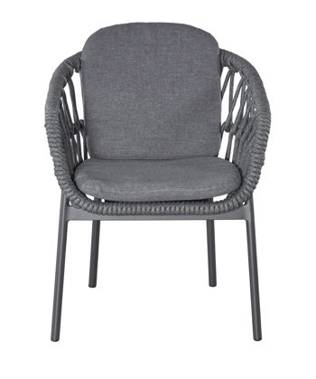 Der Armlehnstuhl Bari der Firma Wholesaler ist in tollen Rope Material gearbeitet in der Farbe dunkelgrau. Das Gestell ein Aluminiumgestell in der Farbe anthrazit. Die Auflage ist ein Olefin dunklegrau gehalten. Dieser Stuhl ist einfach ein echter Hingucker.