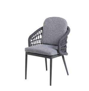 Der Armlehnstuhl Interliving 7012 der Firma Wholesaler Interliving ist in tollen Rope Material gearbeitet in der Farbe dunkelgrau. Das Gestell ein Aluminiumgestell in der Farbe anthrazit. Die Auflage ist ein Olefin Teddy in hellgrau gehalten. Dieser Stuhl ist einfach ein echter Hingucker.