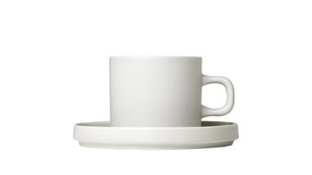 blomus Kaffeetassen-Set Pilar | hellgraue Keramik | zweiteilig | leicht glänzende Oberfläche | spülmaschinengeeignet | mikrowellengeeignet | Durchmesser jeweils ca. 8 cm, Höhe jeweils ca. 7 cm, Länge jeweils ca. 11 cm | Fassungsvermögen jeweils 200 ml | Durchmesser Unterteller ca. 15 cm, Höhe ca. 2 cm | in weiteren Farben und auch als Teetassse bestellbar