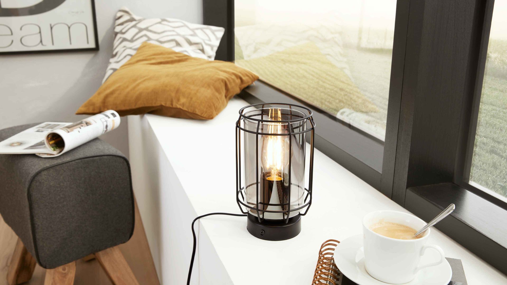 • Die Abbildung zeigt ein Wohnbeispiel, welches auch Dekoration sowie separat erhältliches Zubehör enthält. Im Lieferumfang enthalten ist eine Tischleuchte.