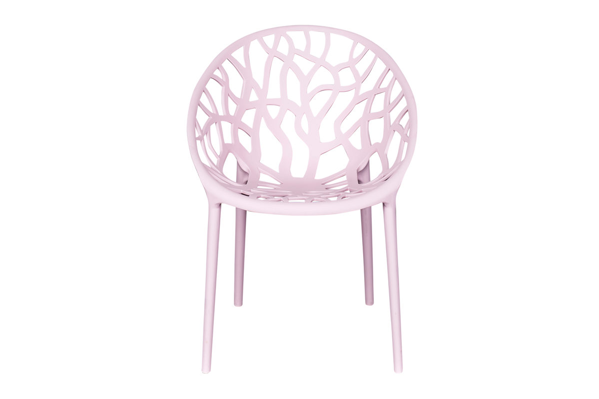 Der Stapelstuhl Vomo der Firma Wholesaler besticht durch sein tolles Strukturdesign. Er ist aus Polypropylen-Kunststoff hergestellt. Die Farbe ist rosa.