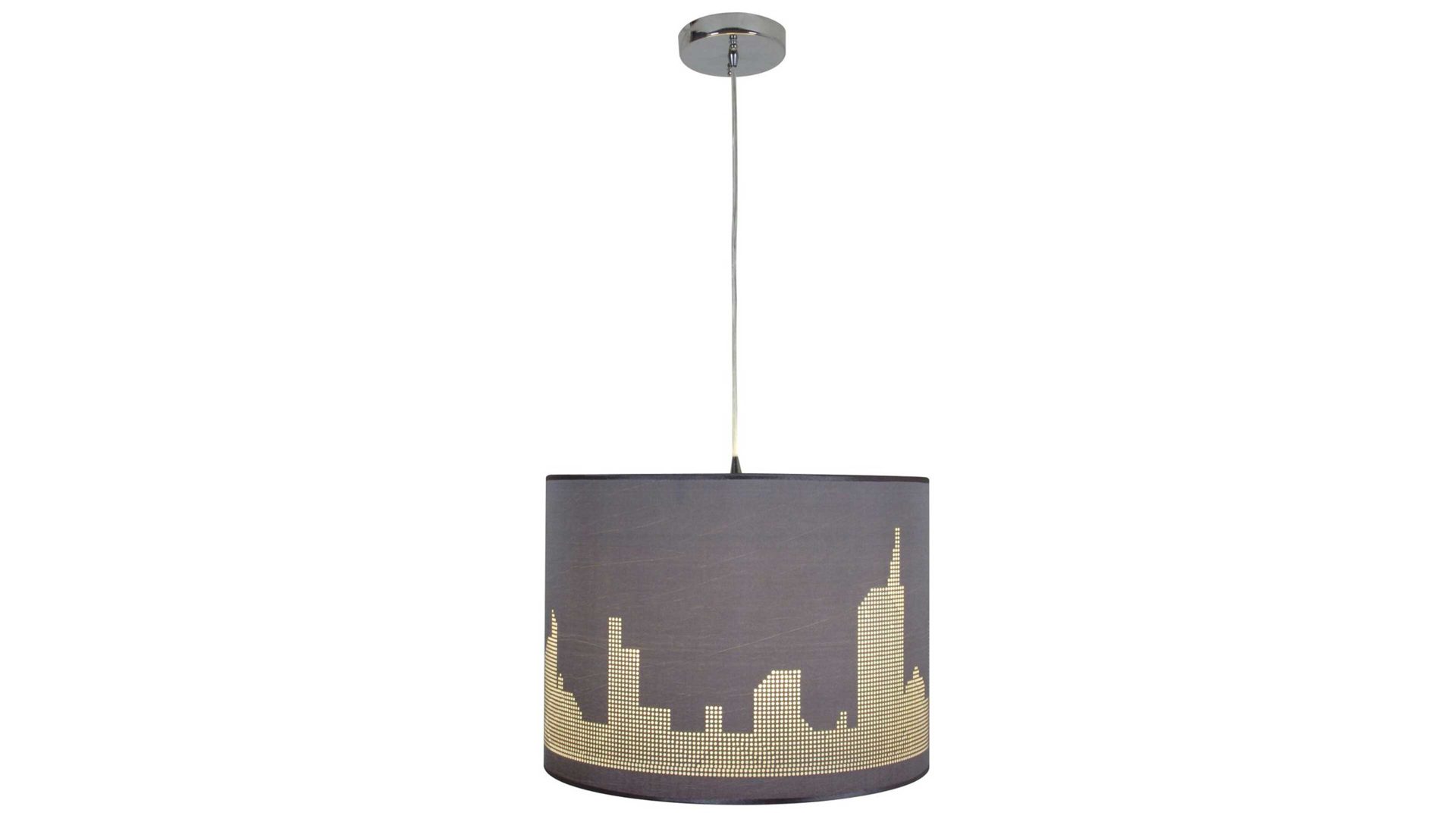 Das optische Highlight der Pendellampe ist die helle Musterung auf dem stilvoll-grauen Lampenschirm. Sie zeigt eine Ansicht der amerikanischen Stadt Manhattan - daher der Name der qualitativ überzeugenden näve Hängeleuchte.
