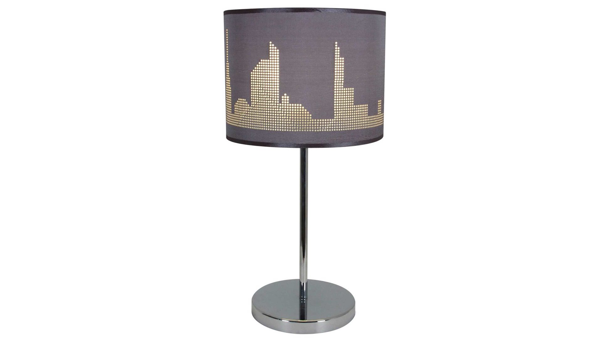 Das optische Highlight der Tischleuchte ist die helle Musterung auf dem stilvoll-grauen Lampenschirm. Sie zeigt eine Ansicht der amerikanischen Stadt Manhattan - daher der Name der qualitativ überzeugenden näve Lampe.