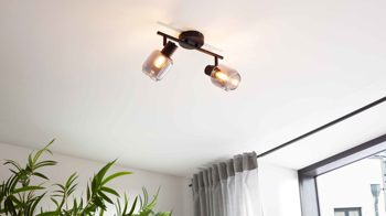 Die elegante Decken-Spotleuchte aus der Interliving Leuchten Serie 9341 verbindet urbanen Charme mit moderner Klarheit. Mattschwarzes Metall trifft auf zwei schwenkbare Rauchglas-Schirme mit Spiegeloptik – ein stilvoller Mix aus Industrial Design und funktionaler Beleuchtung. Ob im Wohnzimmer, Flur oder in kleineren Räumen – diese Leuchte setzt gezielte Lichtakzente und schafft ein edles Ambiente.