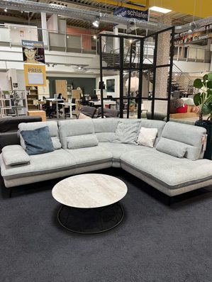 Die Wohnlandschaft MM-MP 1182 der Firma Megapol ist in Stoff Cyber Zinc gehalten. Sie verfügt über eine Sitztiefenverstellung an jedem Sitzplatz außer in den Ecken.