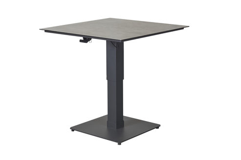 Der Bistrotisch Bondino der Firma Wholesaler ist mit einer Glasplatte mit Keramikbeschichtung in Betonoptik gehalten. Er hat eine tolle kleine Größe mit B/T 70x70cm. Zudem ist er höhenverstellbar von 48cm-66cm und kann so sowohl als Beistelltisch, als auch als kleiner Esstisch genutzt werden.
