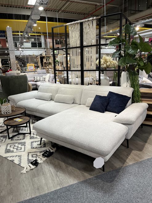 Die Wohnlandschaft MM-MP 1171 der Firma Megapol ist in Stoff Famosa alu gehalten. Sie verfügt über eine Sitztiefenverstellung im 3-Sitzer.