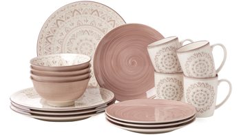 Bei diesem Kombiservice gehen hohe Qualität und kreativ-stilvolles Design Hand in Hand. Das Geschirr präsentiert sich in einem warmen, wohnlich-einladenden Braunton, akzentuiert durch Ornamente, die einerseits Verspieltheit und andererseits Harmonie ausstrahlen. Hergestellt ist das Essgeschirr aus erstklassigem Porzellan. Dank des edlen Materials und des charmanten Designs erscheint das Kaffeeservice sehr elegant.