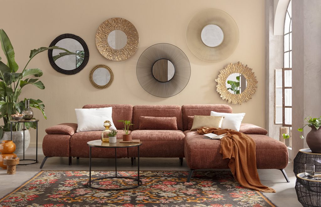 Das Ecksofa Franklin der Firma Kawoo ist in einem tollen Kupferton gehalten.
