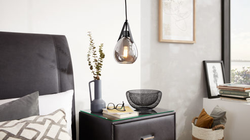 • Die Abbildung zeigt ein Wohnbeispiel, welches auch Dekoration sowie separat erhältliches Zubehör enthält. Im Lieferumfang enthalten ist eine Hängeleuchte.